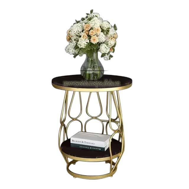 Mesa de centro redonda Simple moderna de mármol negro y metal dorado Mesa auxiliar de alta demanda Perfecta para sala de estar Dormitorio Balcón