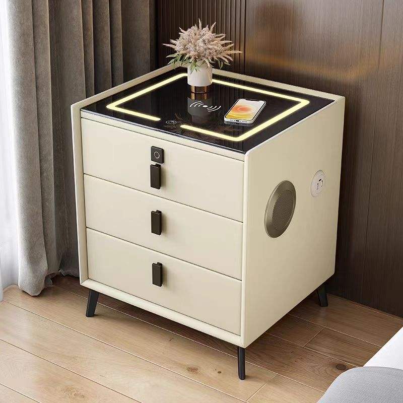 Mesita de Noche Inteligente Moderna y Sencilla de Madera Maciza, Muebles de Dormitorio Baratos al por Mayor con Cajón de Almacenamiento, Mesita de Noche Inteligente para Comedor