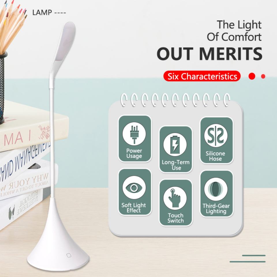 Lámpara de Escritorio LED Moderna y Sencilla para Estudio, Luz Suave Creativa, Protección para los Ojos, Lámpara de Mesa Recargable por USB