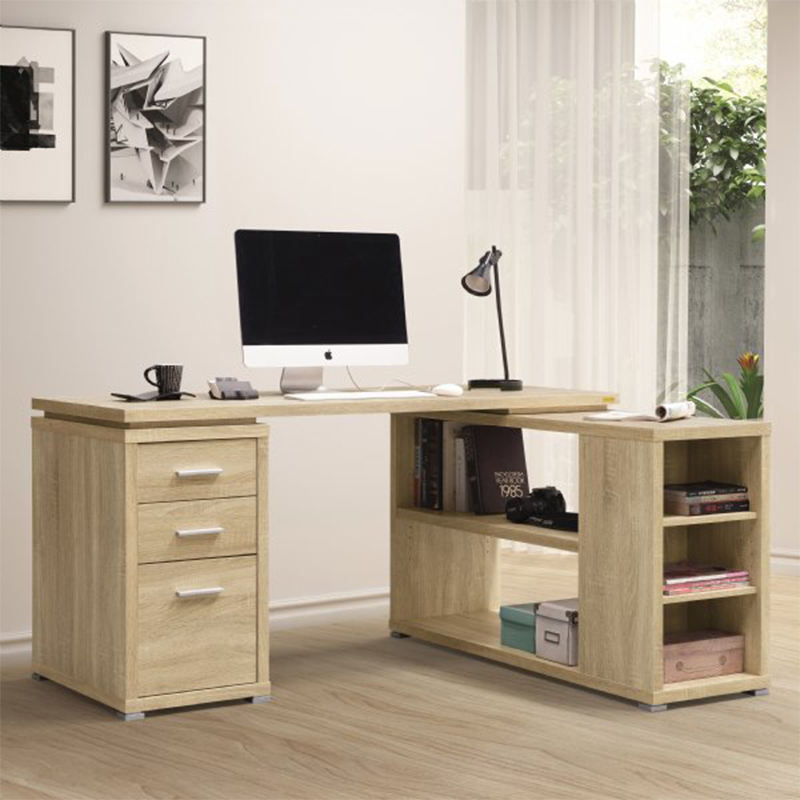 Mesa de Estudio Moderna y Sencilla - Muebles para el Hogar de Madera Natural y Negro Mate para Sala de Estar
