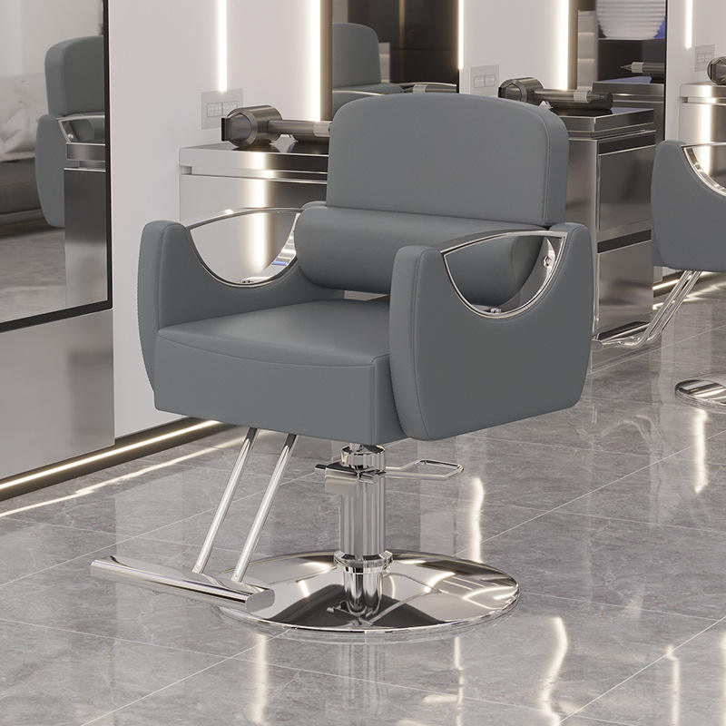 Silla de corte de pelo de estilo Simple moderno, reposabrazos de acero inoxidable, silla de peluquero giratoria de peluquería ajustable en altura permanente