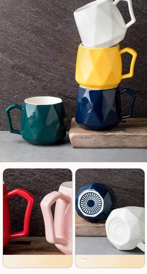 Taza de Café de Cerámica Moderna y Sencilla con Diseño de Diamante Tridimensional