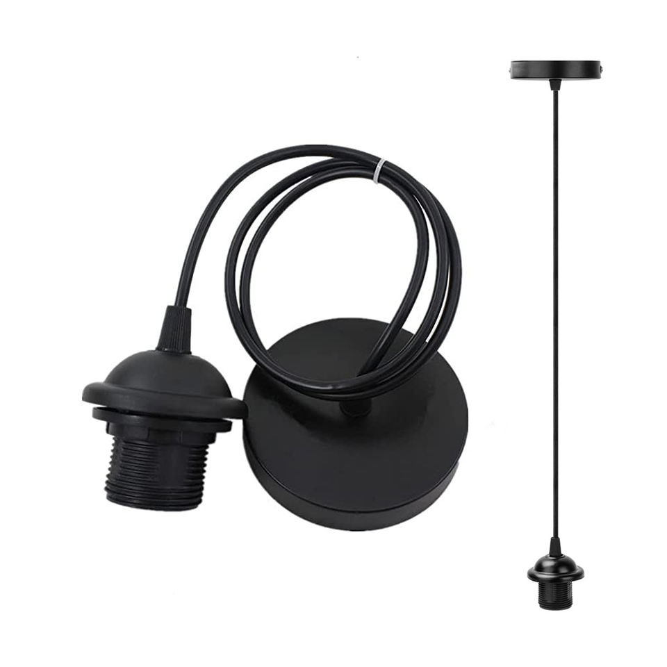 Portalámparas LED de Techo con Rosca E27, Estilo Moderno y Simple, 220V 110V, 1m, Negro, Base E27 para Bombilla Edison Vintage para el Hogar