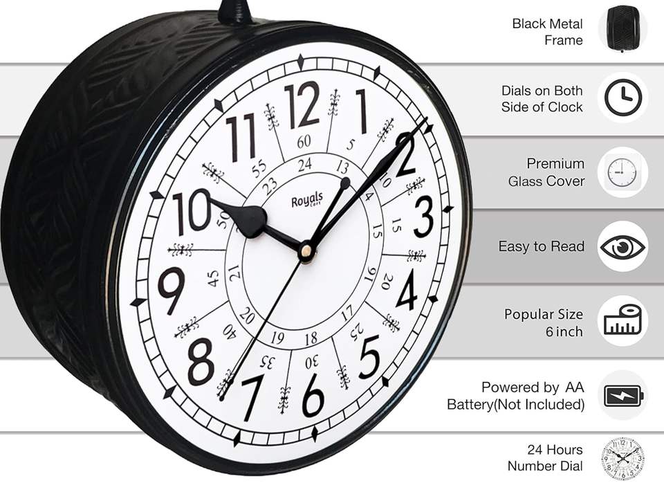 Reloj de Pared Moderno de Una Sola Cara con Esfera de Cuarzo y Hierro, Esferas Negras en Relieve con Patrón de Retrato, LUMINOVA para Sala de Estar