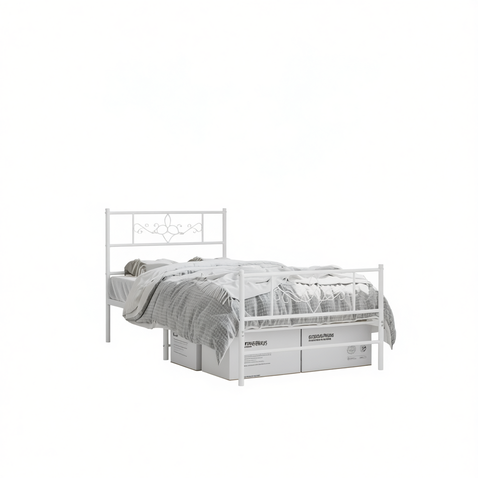 Base de Cama Individual Rectangular Moderna de Acero Blanco, Tamaño Twin, Muebles para Dormitorio