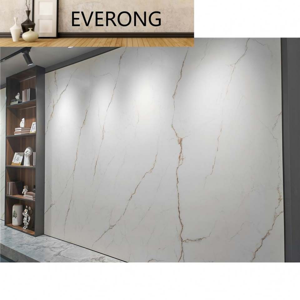 Losa de pared de piedra sinterizada moderna, azulejos de cerámica brillantes blancos, aplicación de carretera de sótano de oro gris mezclado, Fondo de piedra Artificial