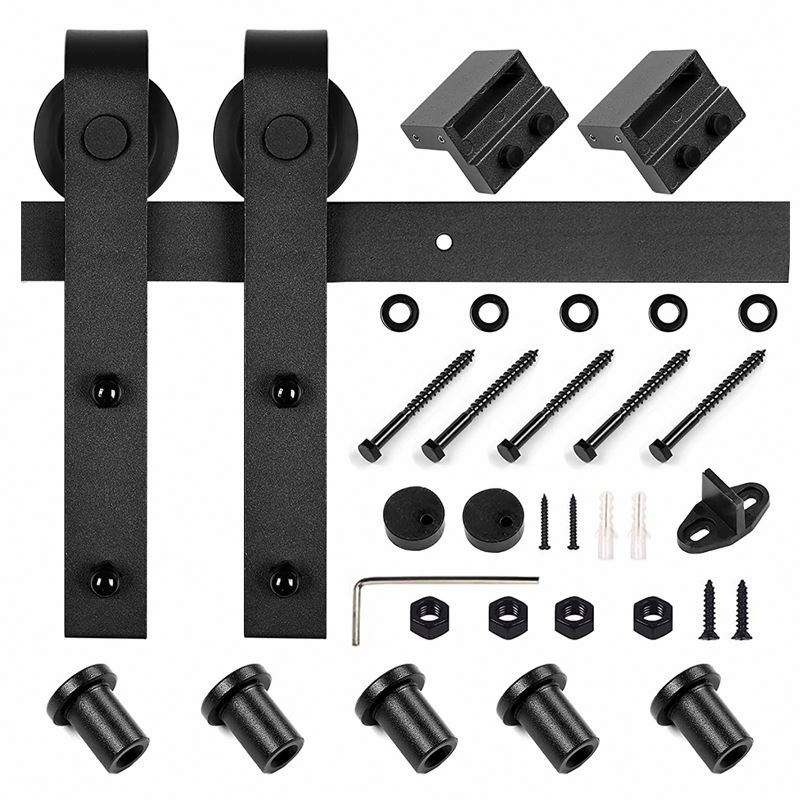 Kit de Herrajes Modernos para Puerta Corredera de Granero, 6.6 Pies, Acero al Carbono, Negro Satinado, Tornillo, Capacidad de Carga de 120 kg, Riel Interior Duradero