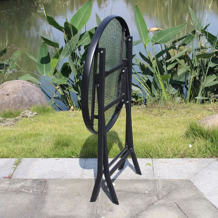 Artículo::Mesa redonda plegable de acero del jardín tamaño pequeño moderno del marco de acero