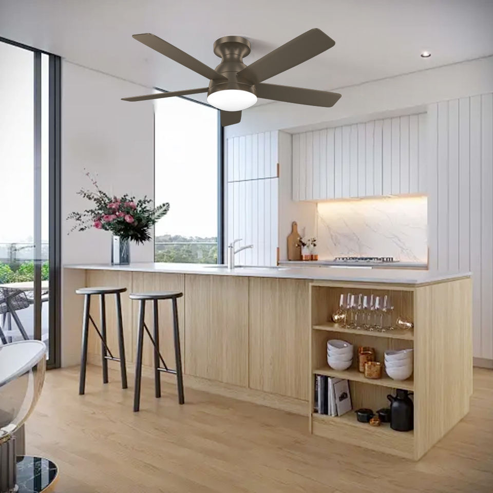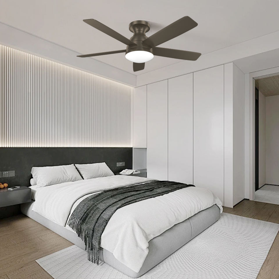 Moderno inteligente 44 pulgadas 5 aspas negro Dc Motor Led ventilador de techo con ventilador de techo de perfil bajo con luces y control remoto para el hogar