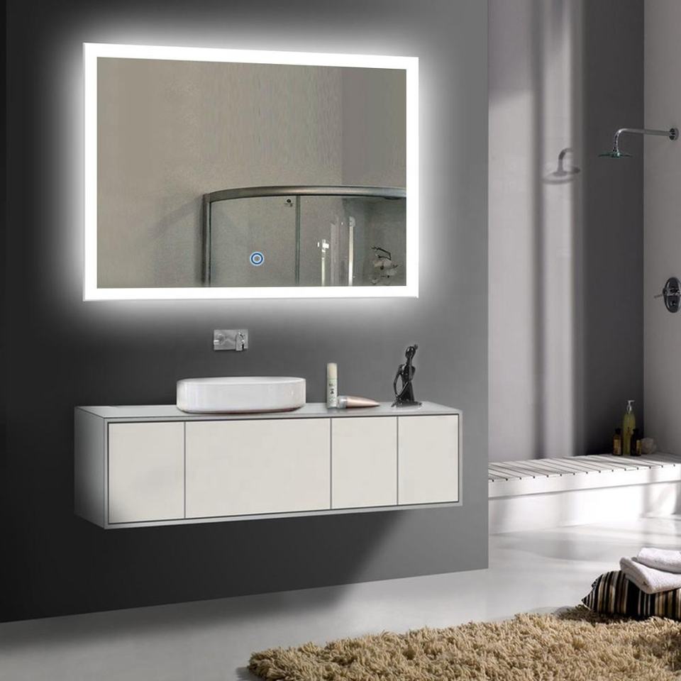 Espejo de baño con luz LED y sensor táctil, diseño popular para baño.