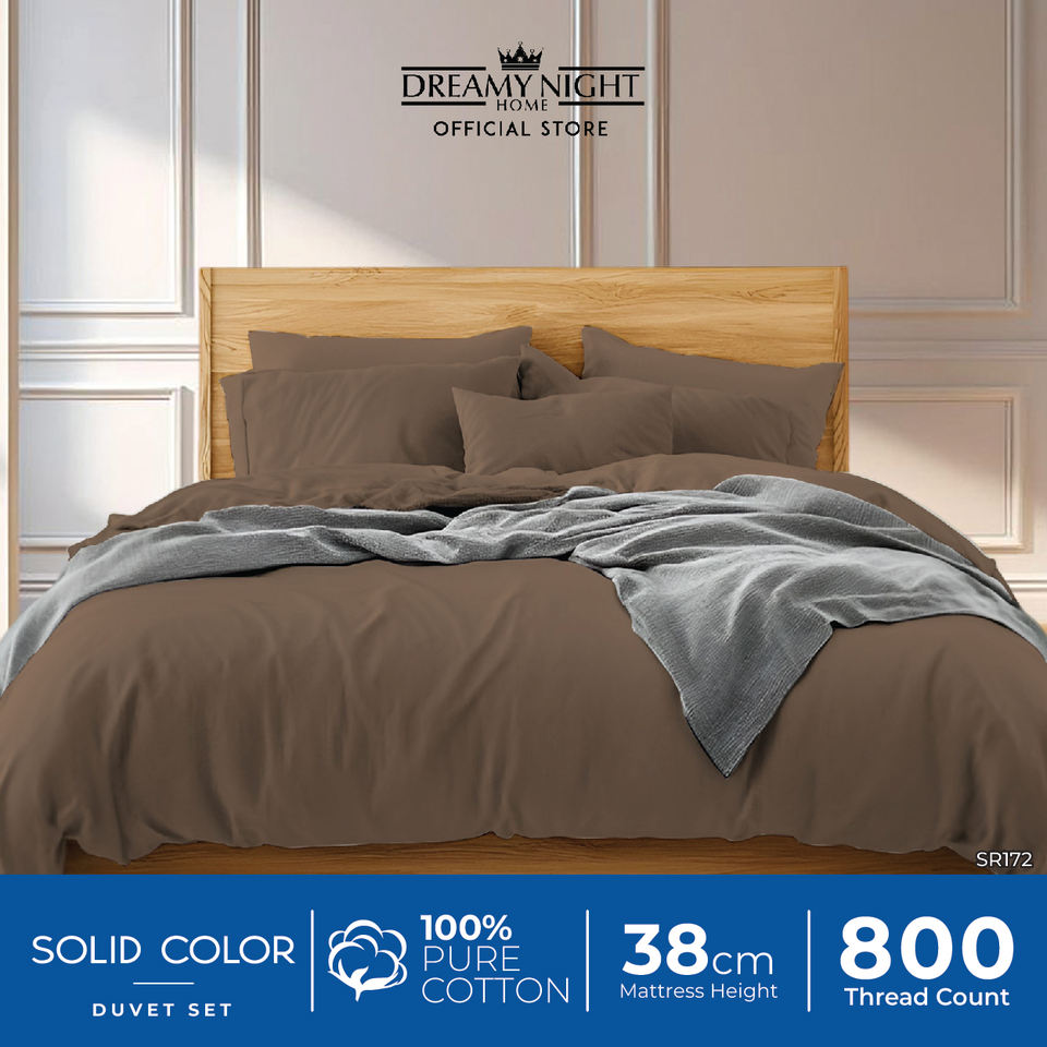 Juego de edredón Queen de 5 piezas de color sólido moderno | 100% algodón puro 950TC ropa de cama suave y transpirable con sábana de bolsillo profundo de 38cm