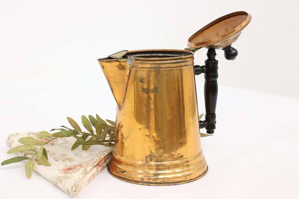Tetera y cafetera de cobre sólido moderno, utensilios de cocina para el hogar para restaurante de Hotel hechos en la India, venta al por mayor en 2023