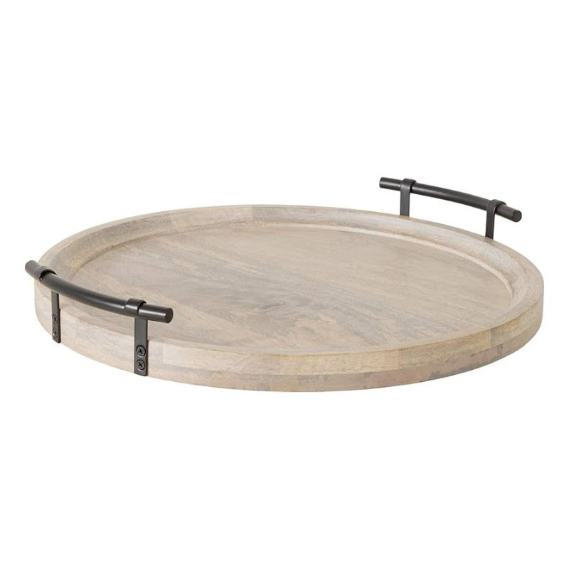 Bandeja Rectangular Moderna de Madera de Mango Maciza con Asas Metálicas, Acabado Pulido Marrón Vintage, Decoración para el Hogar, para Uso en Restaurantes