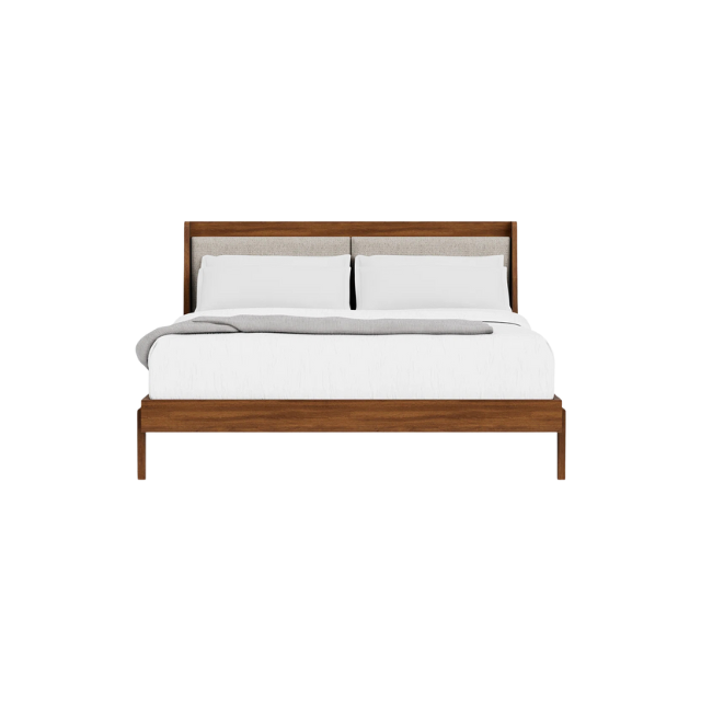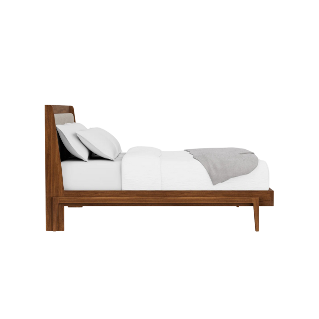 Cama Moderna de Madera de Teca Maciza con Almacenamiento y Cabecera Acolchada Tapizada para Dormitorio
