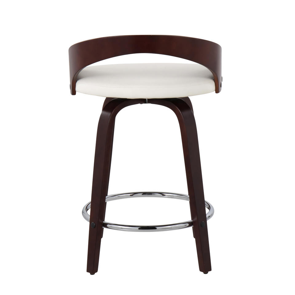 Juego de 2 Taburetes de Bar Modernos con Estructura de Madera Maciza, Giratorios y con Asiento de Cuero Sintético Blanco para Cocina y Restaurante, Uso Comercial