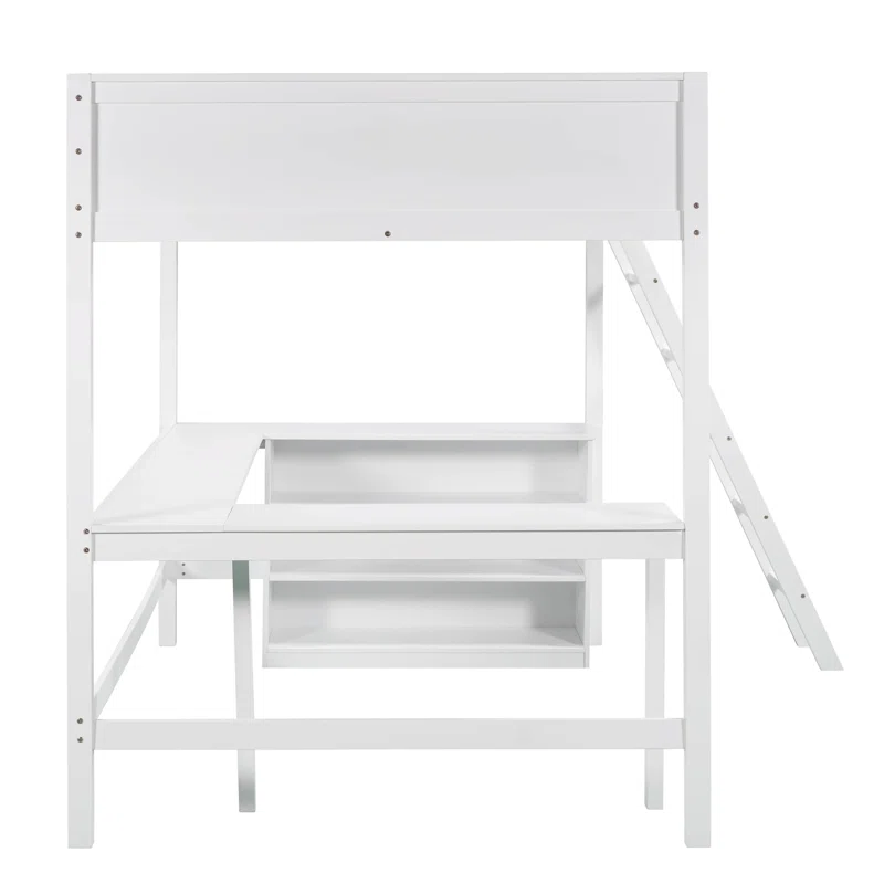 Nombre del producto:Litera completa de madera blanca con mesa incorporada y estantes