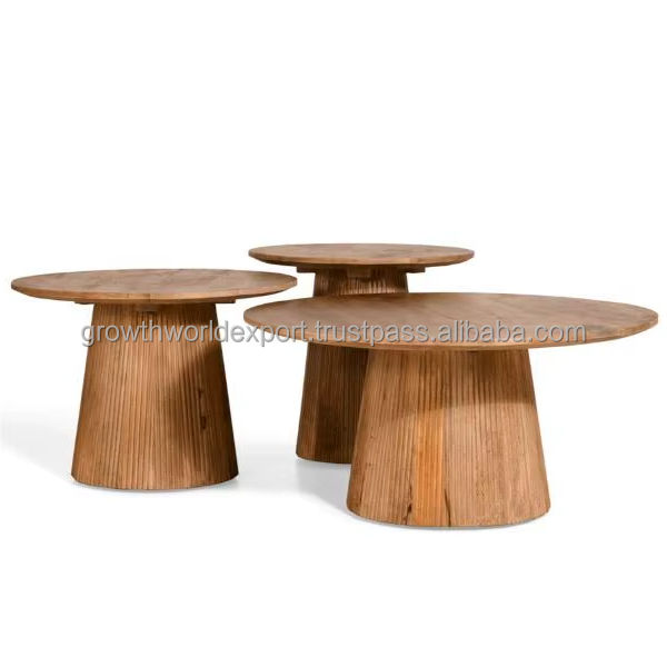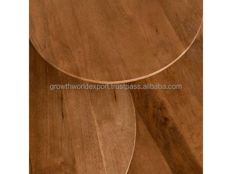 Juego de Mesas de Centro Modernas de Madera Maciza, Mesa Redonda de Madera para Sala de Estar, Juego de Mesas de Centro Minimalistas de Madera Redonda