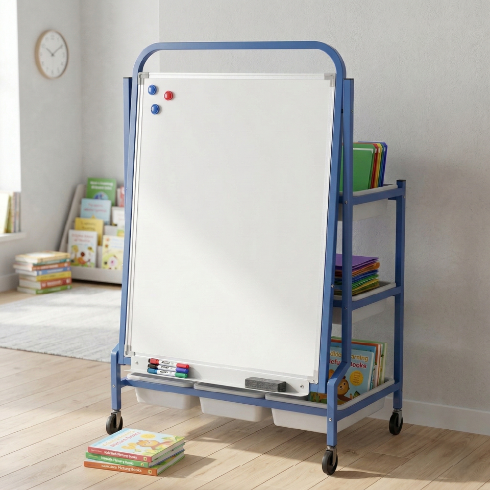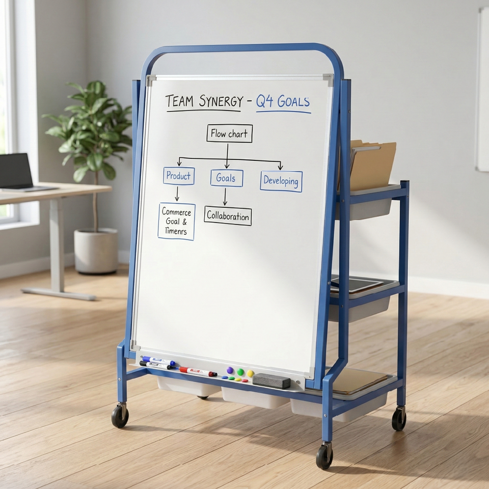 Pizarra Magnética Portátil Multifuncional de Metal con 9 Cajones, Diseño Moderno y Cuadrado, con Almacenamiento, Fabricada en Taiwán