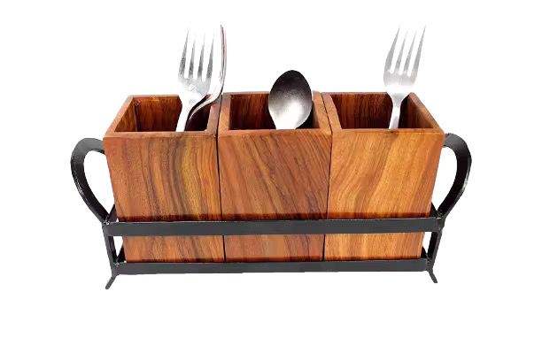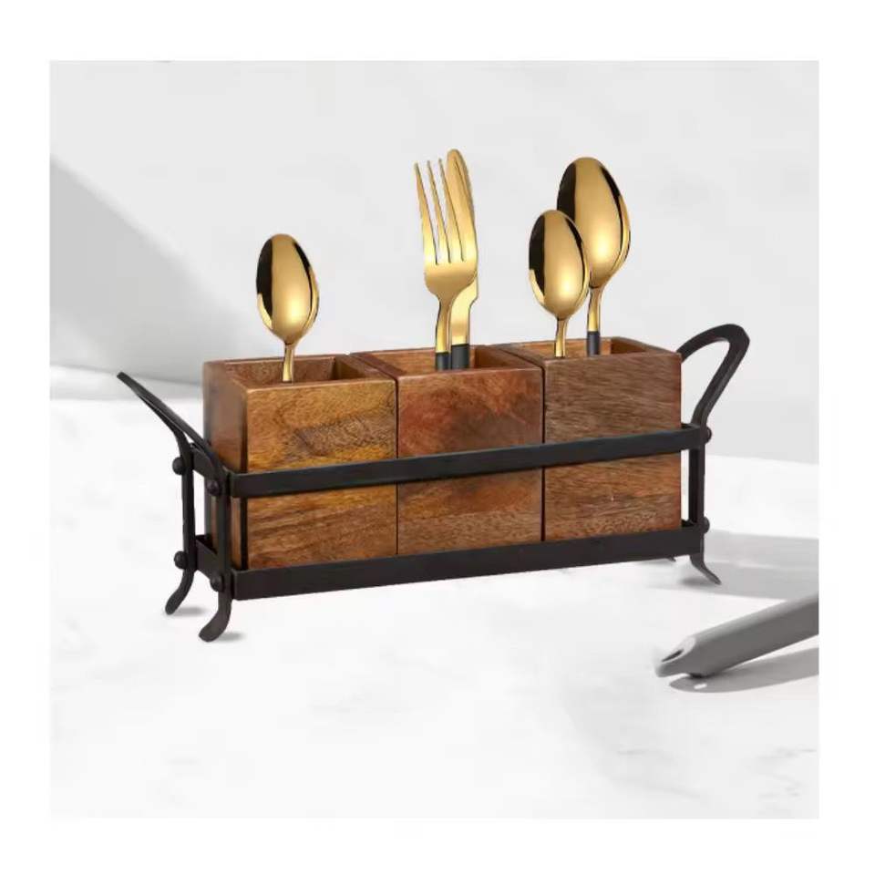 Moderno Soporte Cuadrado Ajustable y Duradero de Madera para Utensilios de Cocina, Organizador de Almacenamiento, Juego de Cucharas de Madera, Herramientas de Cocina, Cubertería para Encimera