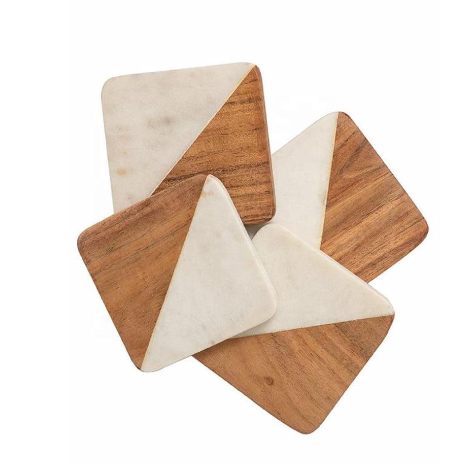 Posavasos de mármol y madera cuadrado moderno, Juego de 4 posavasos para café, bebida, té, mesa de comedor, posavasos de decoración moderna para decoración del hogar