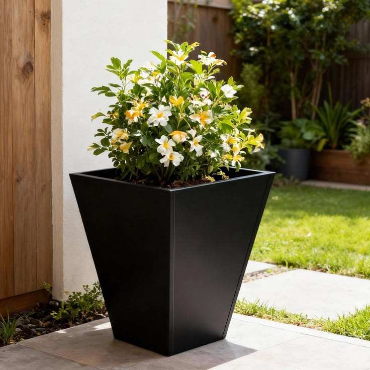 Jardinera Metálica Cuadrada Moderna, Maceta Grande para Interiores y Exteriores, Jardinera de Perfil Bajo, Contenedor Decorativo para Plantas de Patio, Maceta para Flores