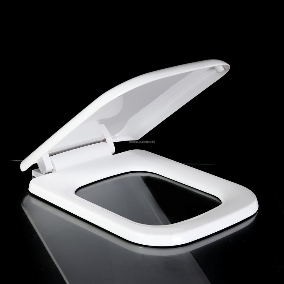 Tapa de inodoro moderna de plástico PP con forma cuadrada y cierre lento, cubierta de bidé OEM para baño, bisagras de tapa de inodoro con cierre frontal