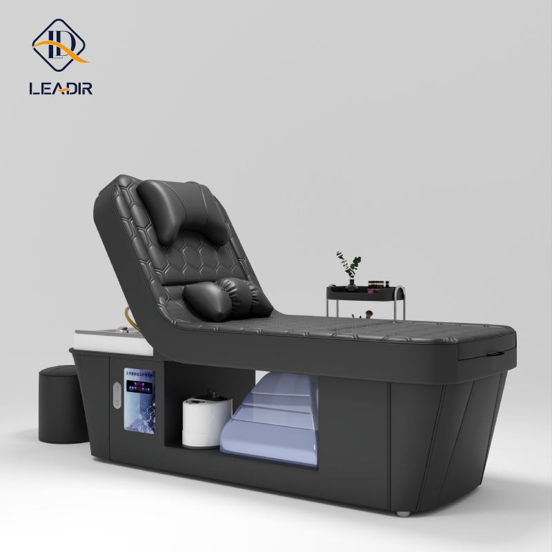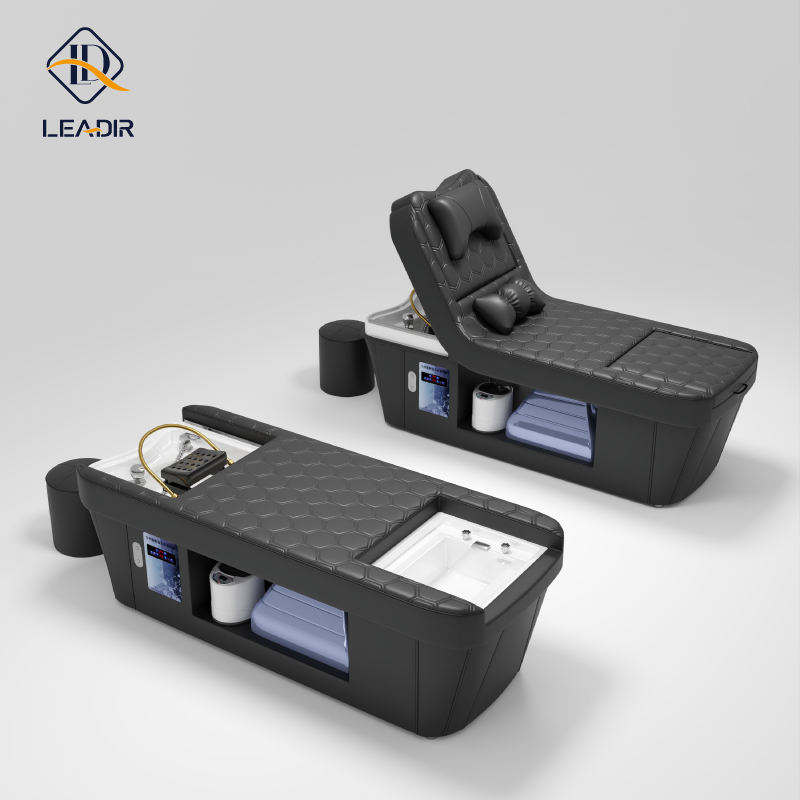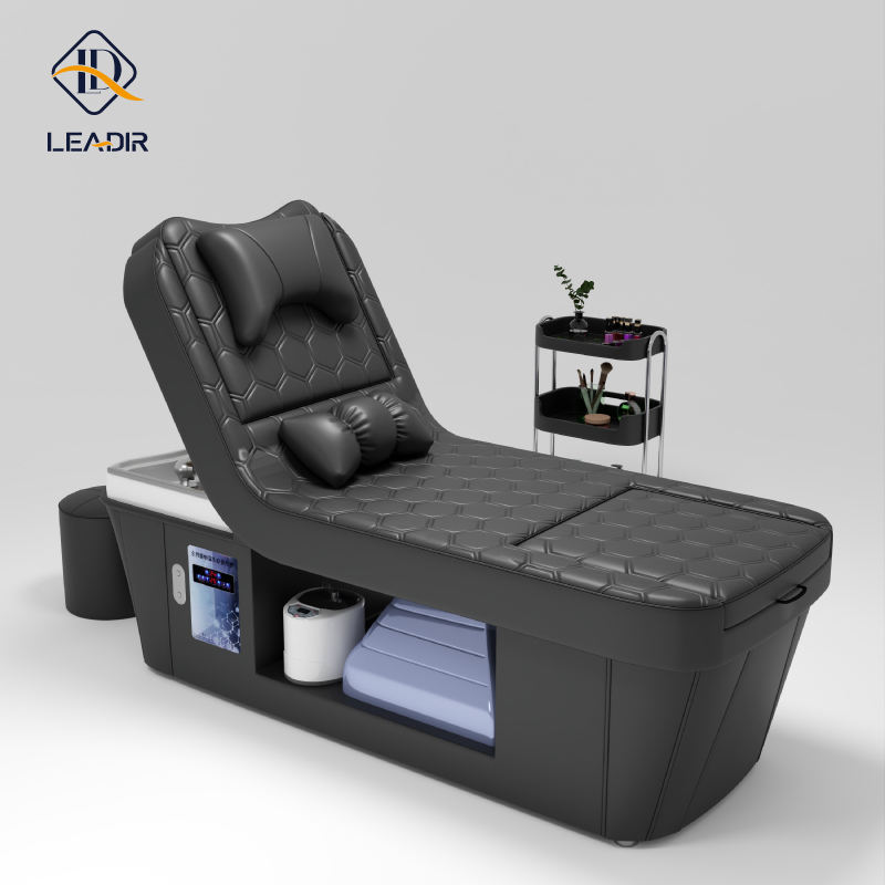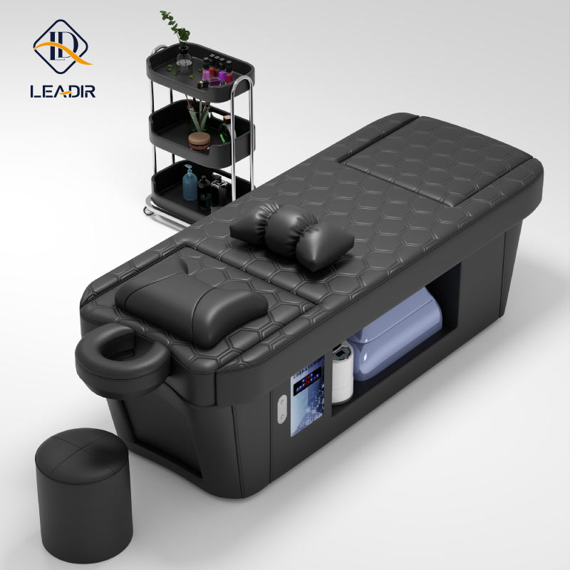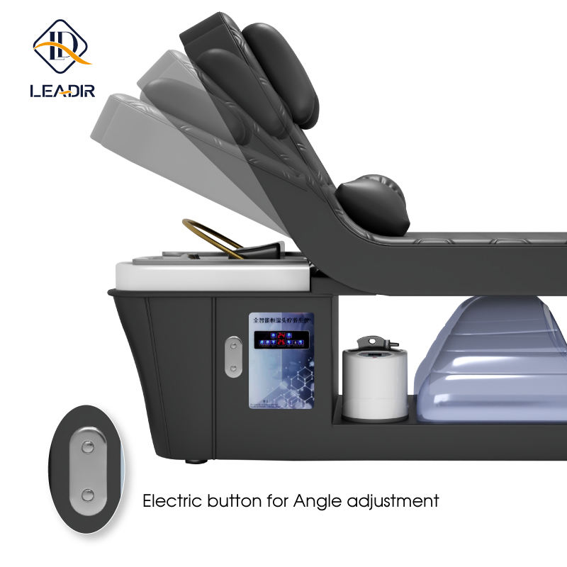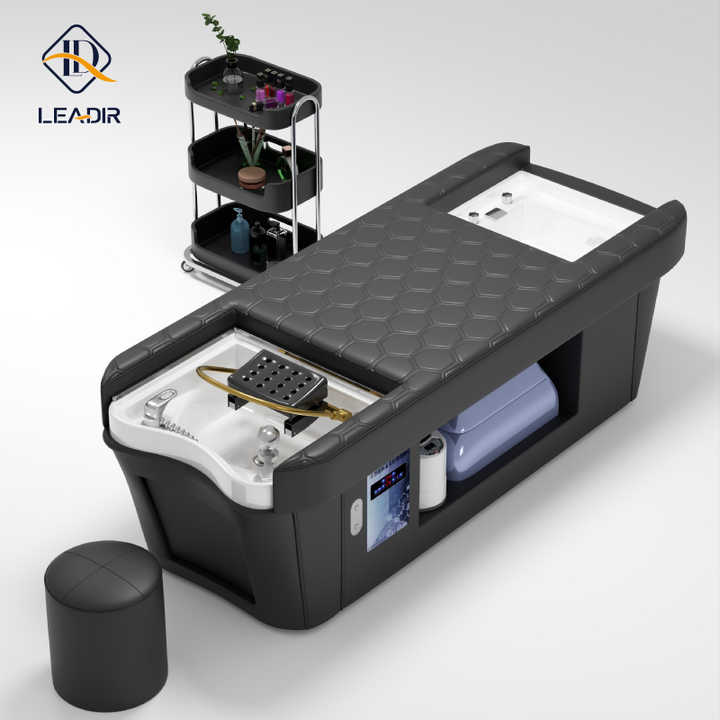 Cama de champú para lavabo de pie con marco de cama de acero inoxidable moderno con sistema de circulación de agua y máquina de fumigación