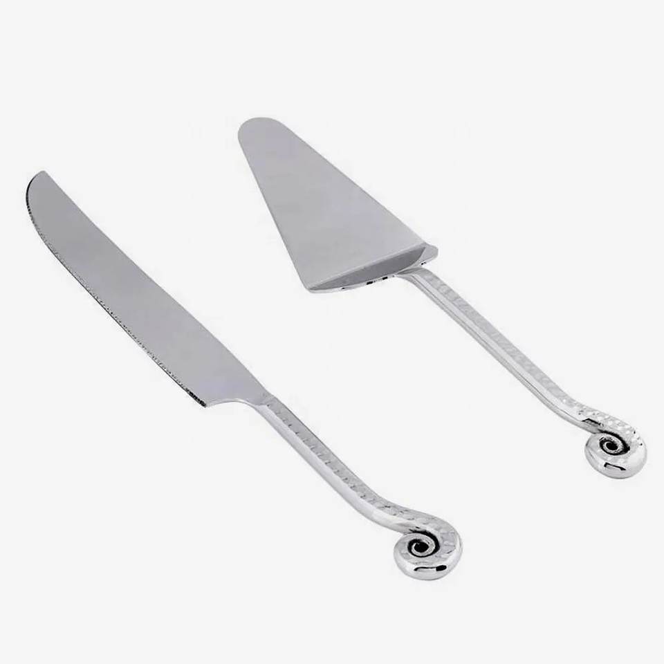 Modern Stainless Steel Cake Tools Cake Server Set With Twisted Handmade Silver Polished Handle Wedding Server Sets