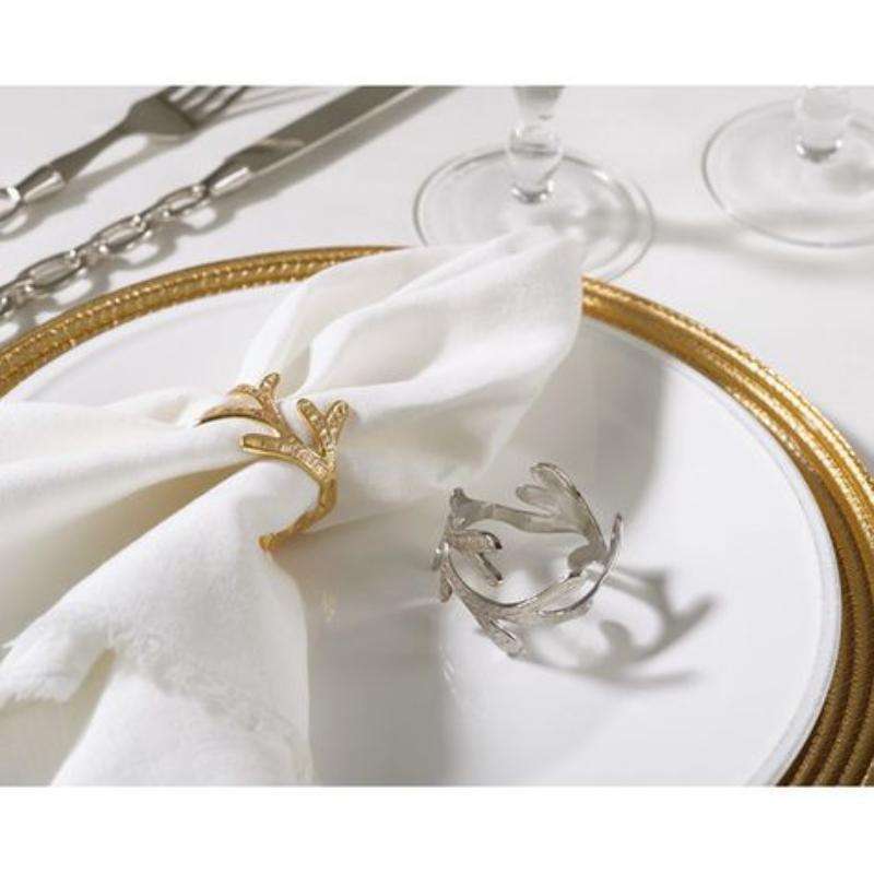 Servilleteros modernos de acero inoxidable con construcción duradera y grabados únicos para complementar las elegantes configuraciones de vajilla