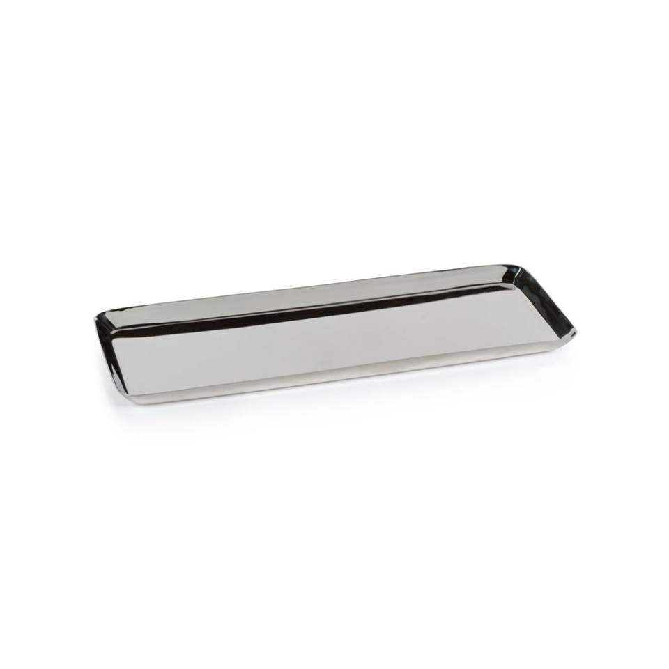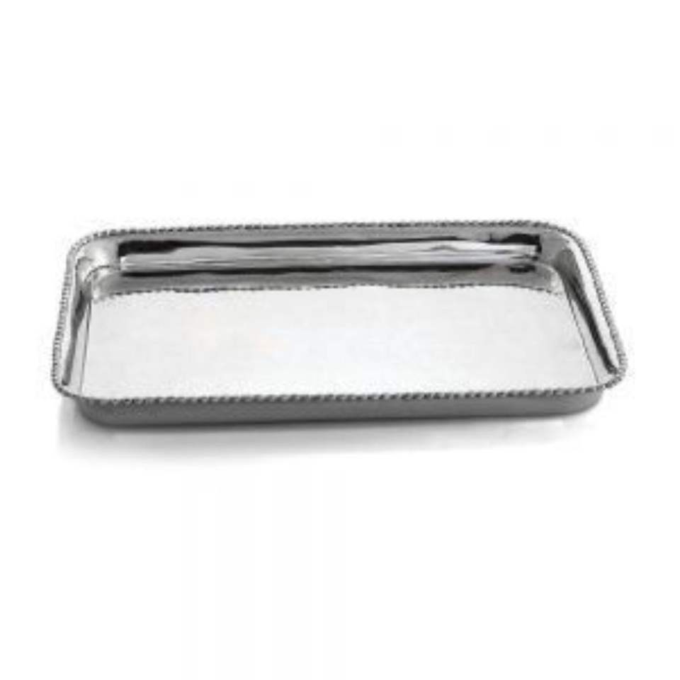 Bandeja Rectangular Moderna de Acero Inoxidable con Borde Ranurado, Elegante Plato Decorativo de Metal para Mesa de Centro y Hogar