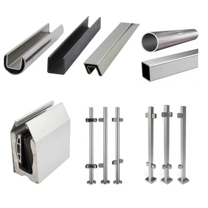 Barandilla de vidrio, Montado, Barandilla de acero inoxidable, Ajustable, Barandilla de tuberíaTipo de