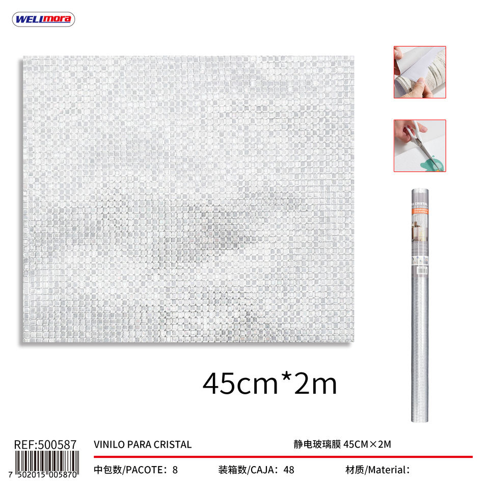 Película de Vidrio Estático Shirong Importación y Exportación SA de CV, 45 cm x 2 m, Autoadhesiva, con Relieve PET, para Uso en Apartamentos