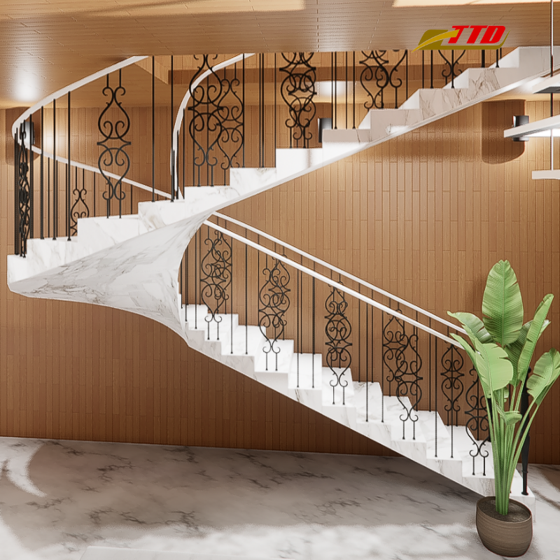 Barandilla de Acero Moderna para Escaleras Interiores, Barandas de Hierro Forjado Personalizadas, Diseño de Escalera Resistente, Duradero y Elegante para Cualquier Espacio