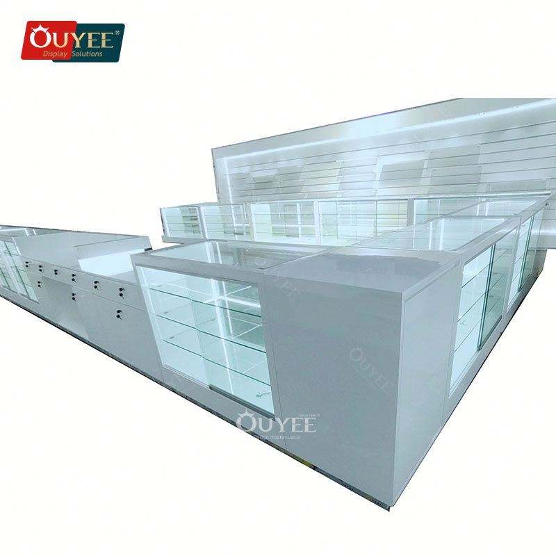 Accesorio de tienda moderno, dispensario minorista, exhibición de tienda, vitrina de vidrio Slatwall, gabinete de cigarros, exhibición de tienda minorista de humo
