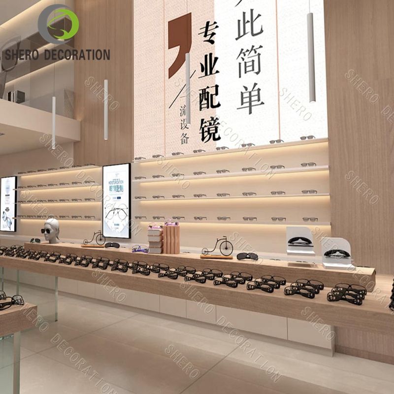 Mostrador de exhibición de gafas de sol de madera - Diseño personalizado de tienda de gafas