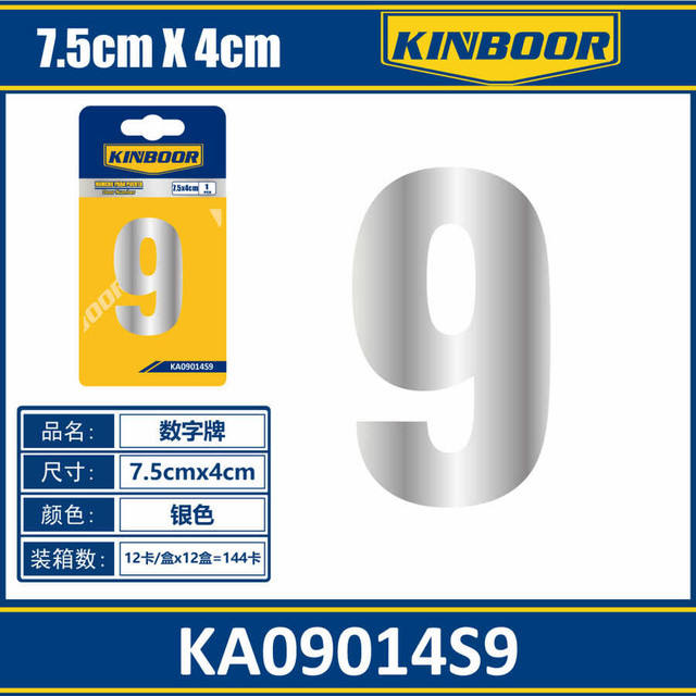 Estilo moderno 75cm X 4cm Puerta plateada Número 9 Placa de letrero Placa de acrílico de aluminio de acero de latón duradero para uso en el hogar Oficina Hotel