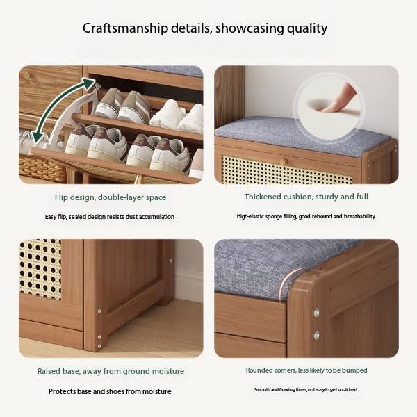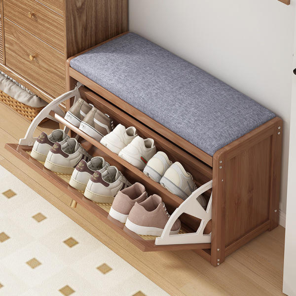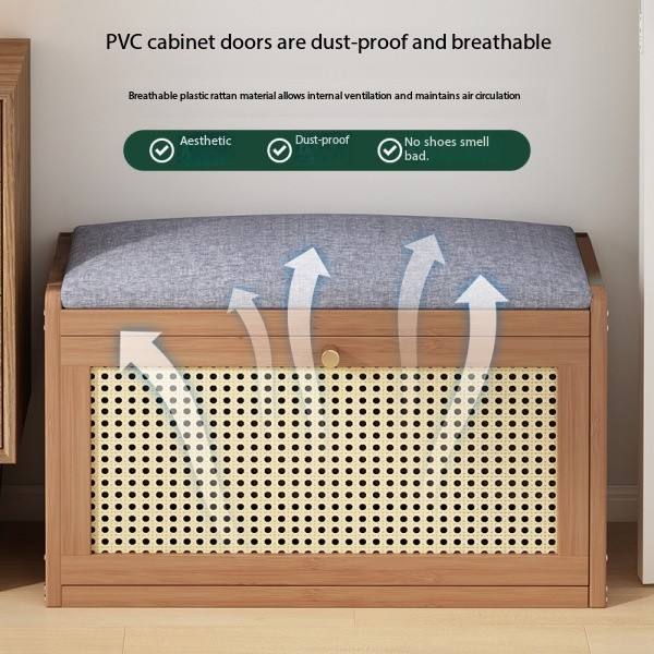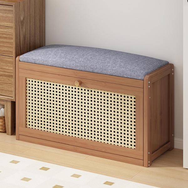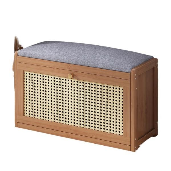 Banco de Almacenamiento de Zapatos de Bambú de Estilo Moderno para la Entrada, Utilizado para la Puerta de Entrada de la Sala de Estar Familiar con Cojín.