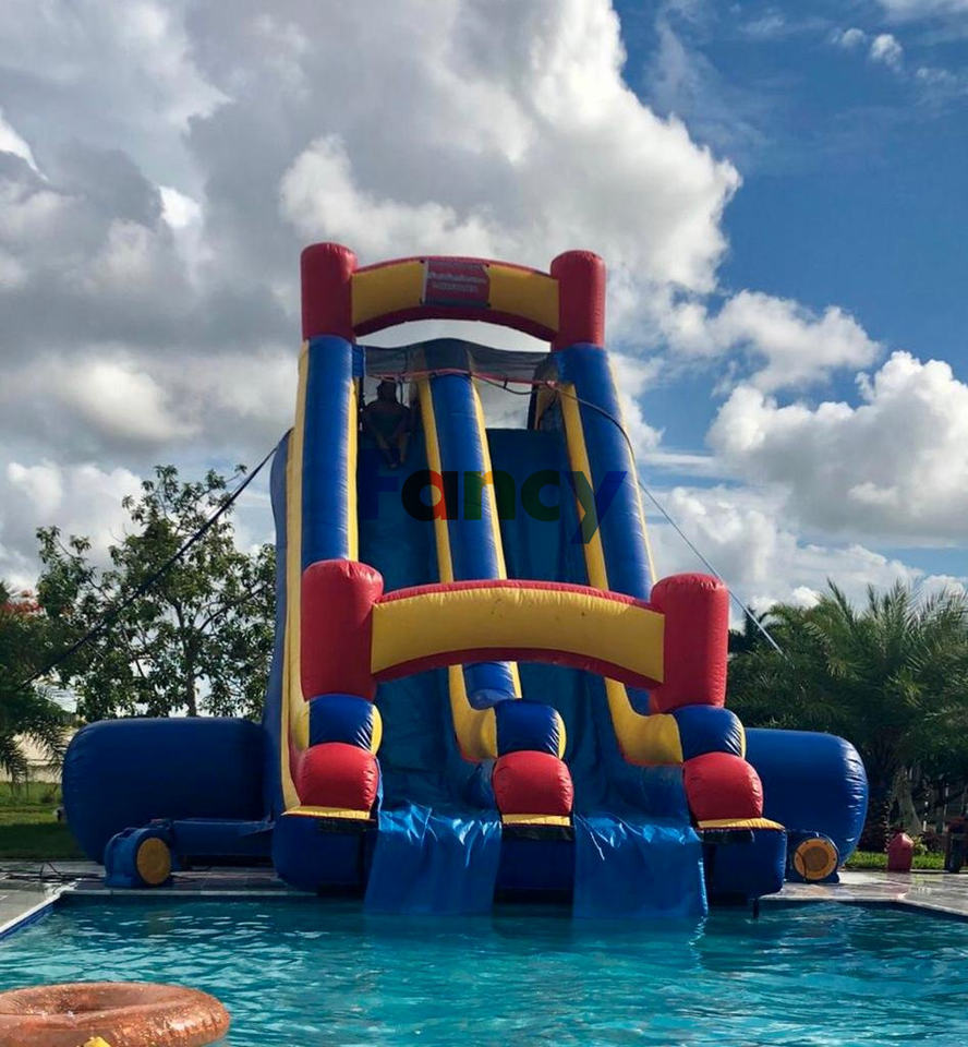 Tobogán de Castillo de Casa de salto inflable de dibujos animados de estilo moderno/castillos hinchables de Happy Hop/tobogán seco inflable de tres toboganes a la venta