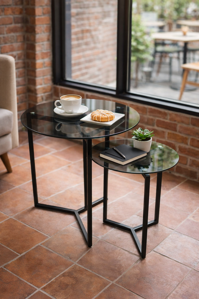 Juego de Mesas de Centro de Estilo Moderno con Tapa de Vidrio Gris y Estructura Metálica