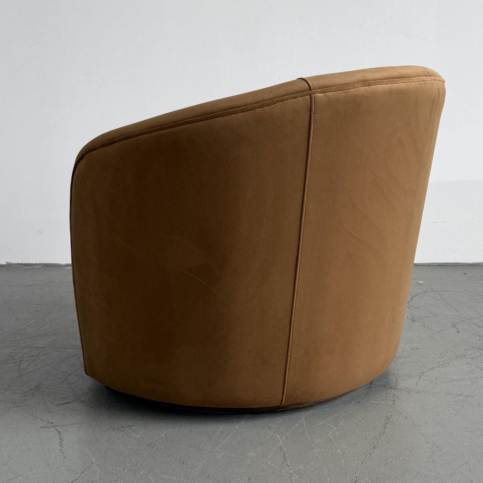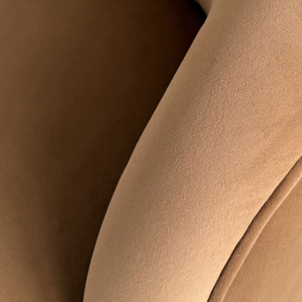Product name:Curved Back Wooden Base Brown Velvet Upholstered Swivel Barrel Chair