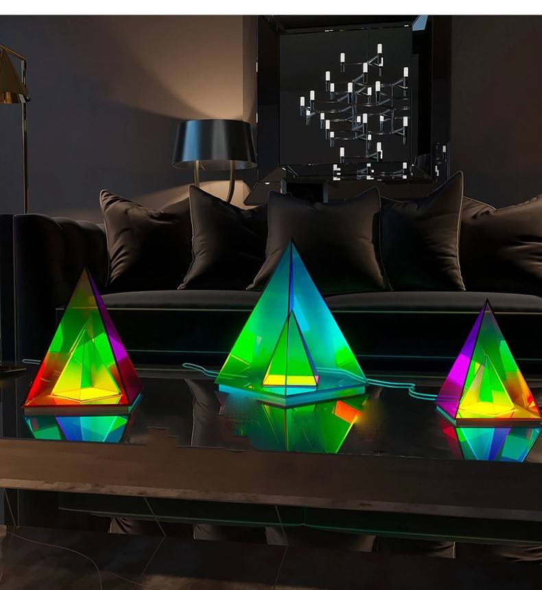 Lámpara de mesa LED acrílica personalizada de estilo moderno, Lámpara decorativa de cubo de Rubik de pirámide de cerámica, función Flexible para sala de estar y dormitorio