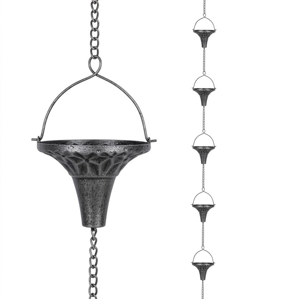 Cadena de Lluvia Decorativa de Estilo Moderno para Exteriores, Tazas en Forma de Embudo, Metal Negro, para Jardín, Fuente de Agua, a Bajo Precio