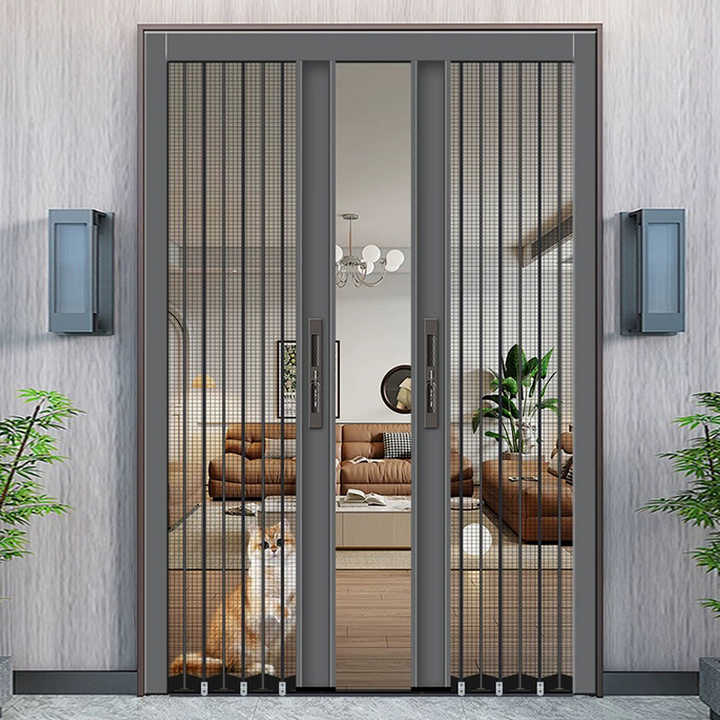 Puerta de entrada de malla de diamante de estilo moderno, de acero inoxidable, plegable sin clavos, malla plana muy estrecha para gatos, perros, ratones, antisepsis