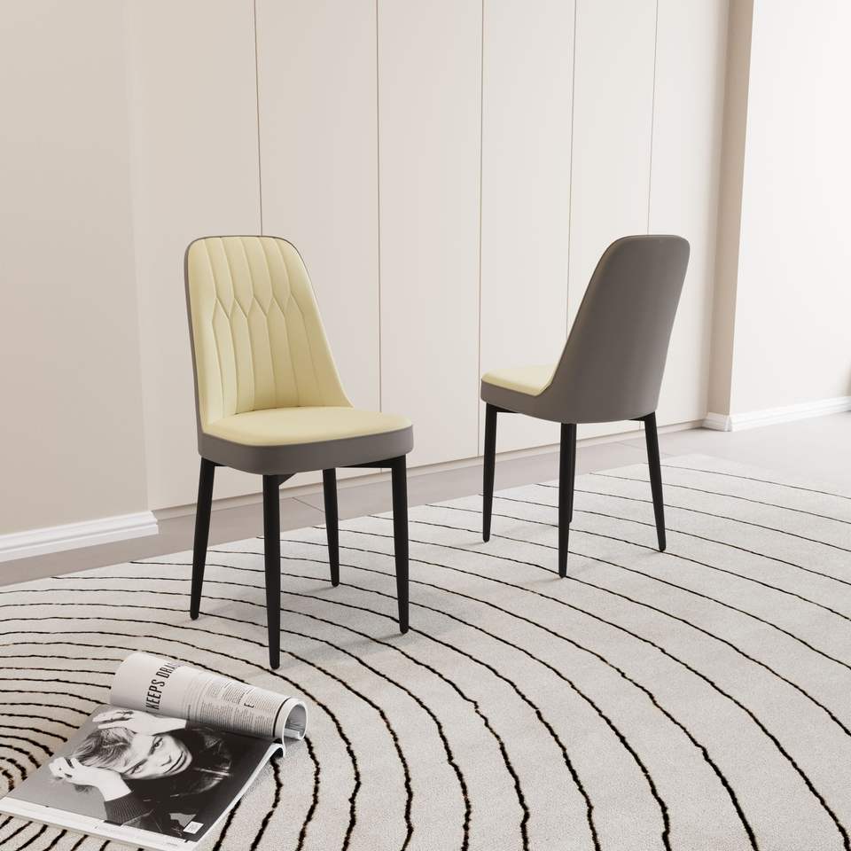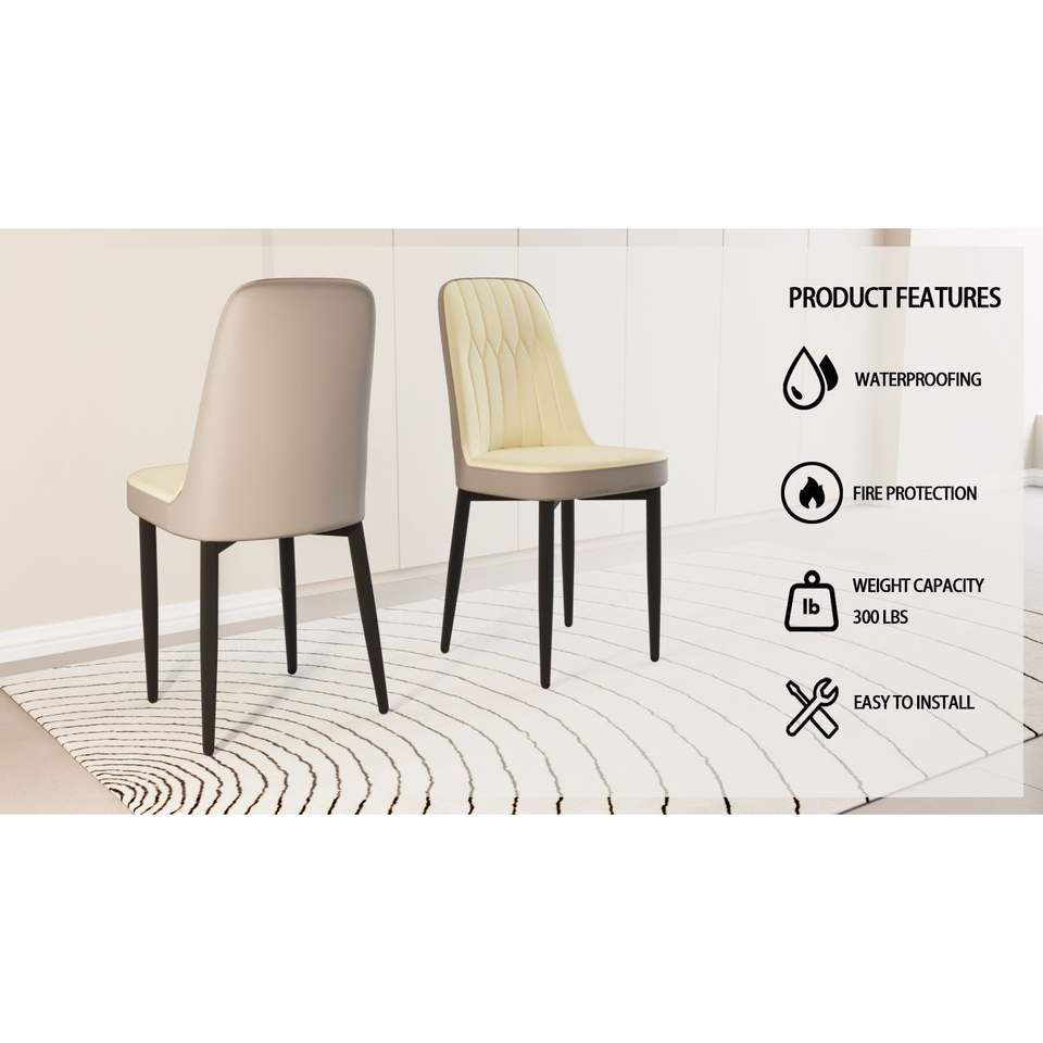 Juego de 2 Sillas de Comedor de Estilo Moderno, Tapizadas en Cuero PU de Alta Calidad con Cojines Gruesos y Suaves, Patas de Metal Negro