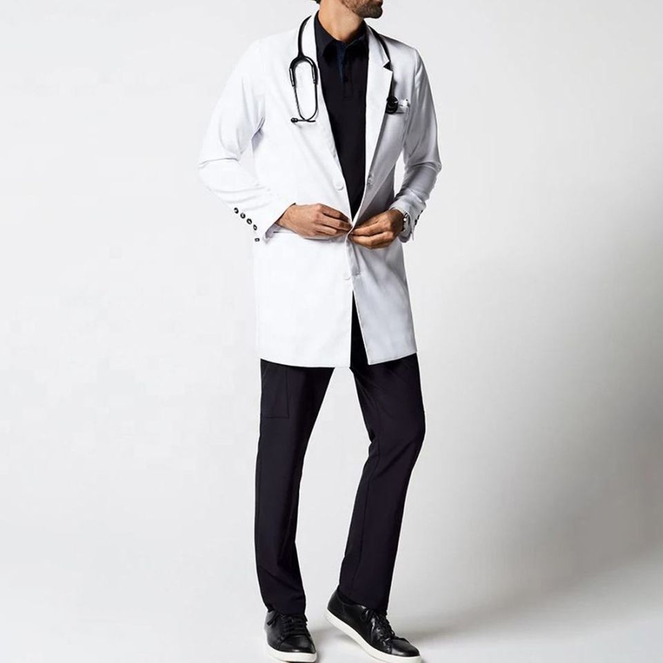 Bata de Laboratorio Médica Moderna, Uniforme Blanco Personalizable con Marca, Ropa de Hospital y Clínica, Manga Larga, Tela Premium Resistente