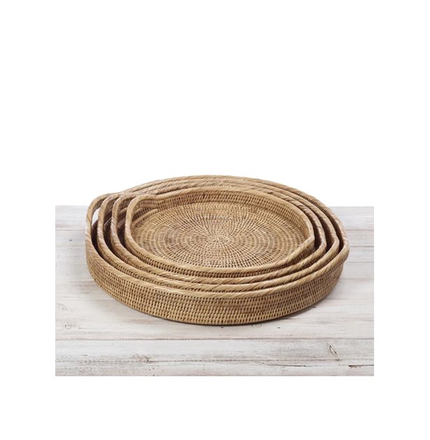 Bandeja Redonda de Ratán Natural Ecológica de Estilo Moderno para Servir Té y Café, Decoración para Mesa de Café, Venta al Por Mayor