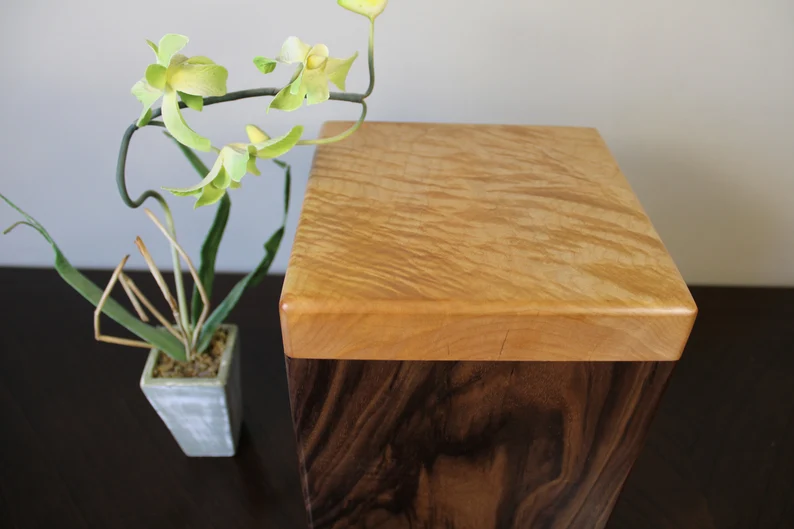 Urna de Cremación de Madera Ecológica de Estilo Moderno para Perros y Gatos, ODM OEM, Nogal Negro y Arce Flameado, Elegantes Ataúdes para Mascotas
