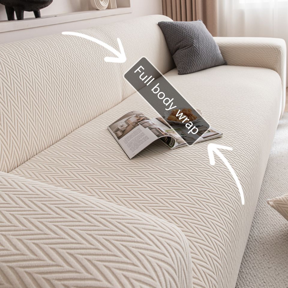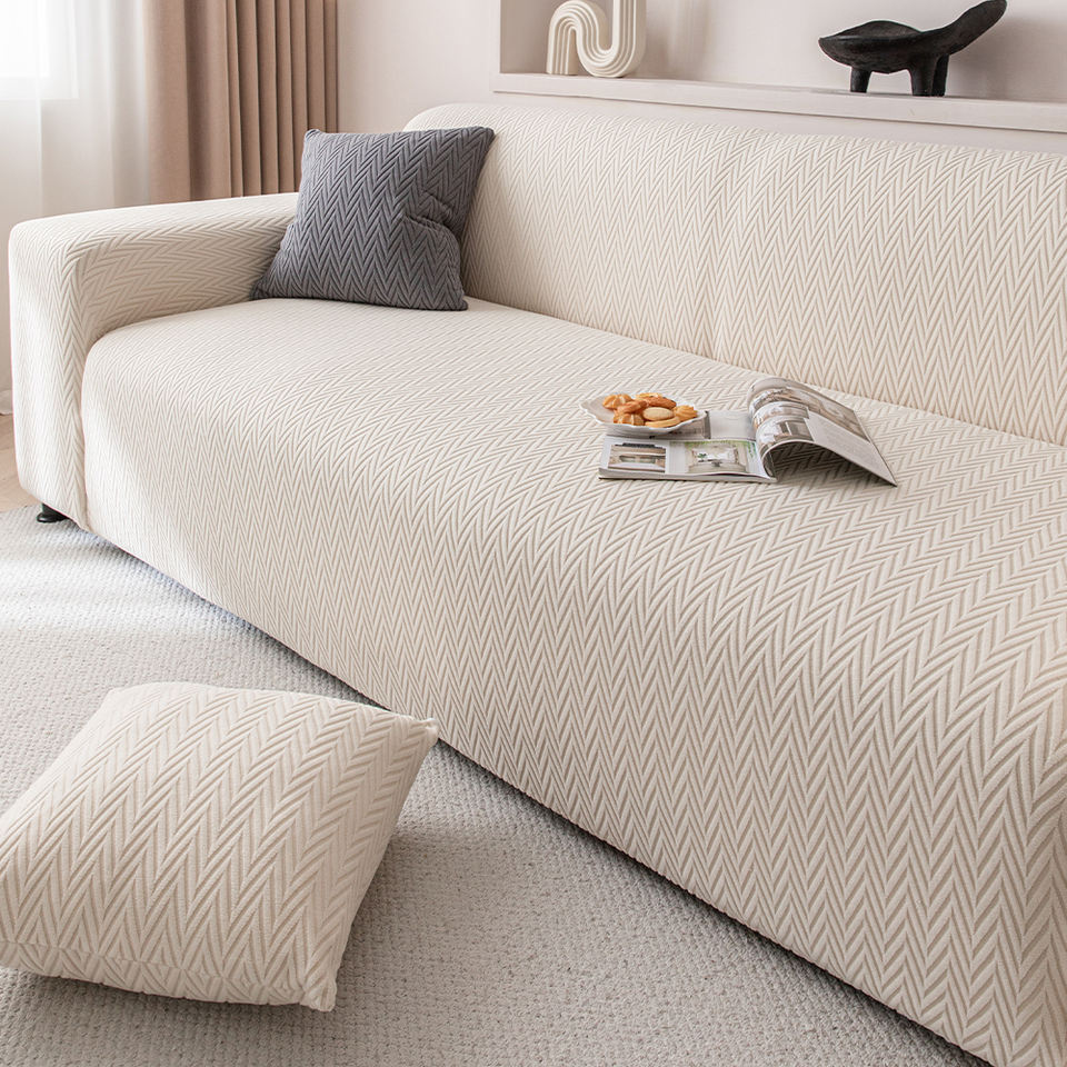 Funda de Sofá Elástica de Estilo Moderno para Sala de Estar, Color Sólido, Patrón Jacquard Ondulado, Apta para Mascotas, de Poliéster