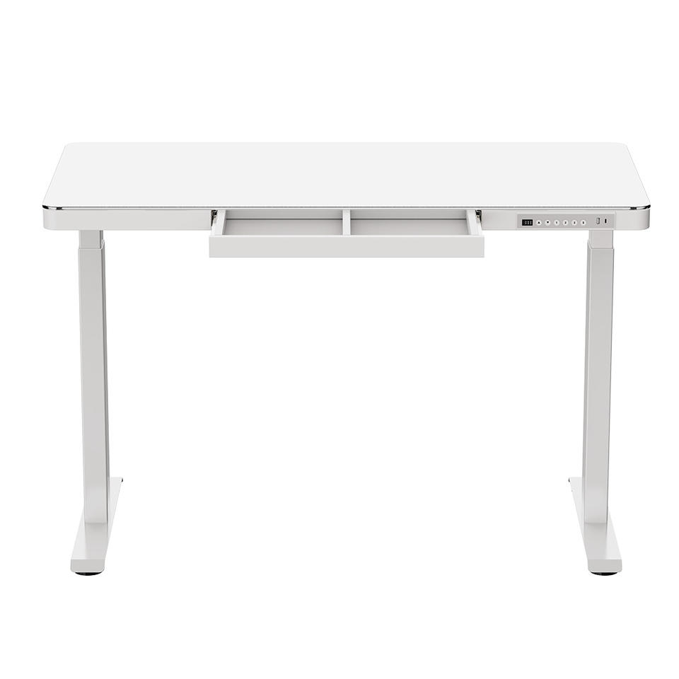 Escritorio inteligente eléctrico de estilo moderno Mesa de vidrio templado ajustable en altura Convertible Cajón giratorio Puertos USB Oficina popular