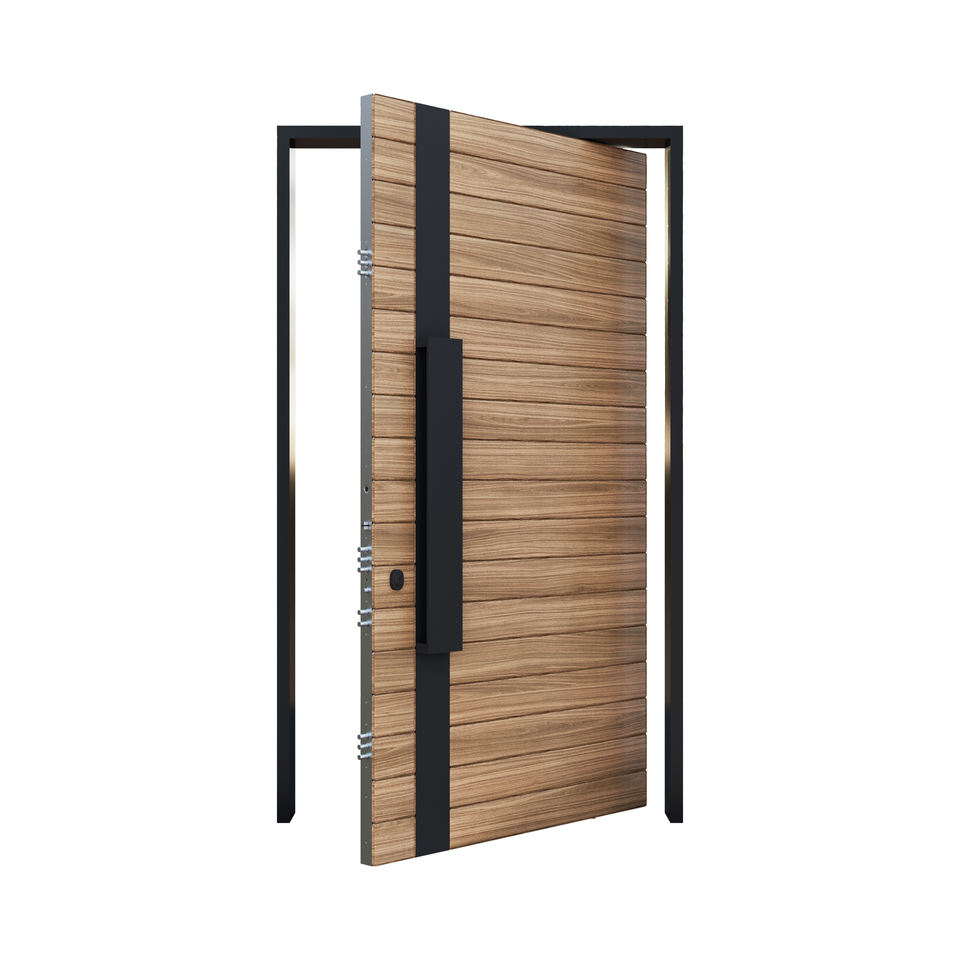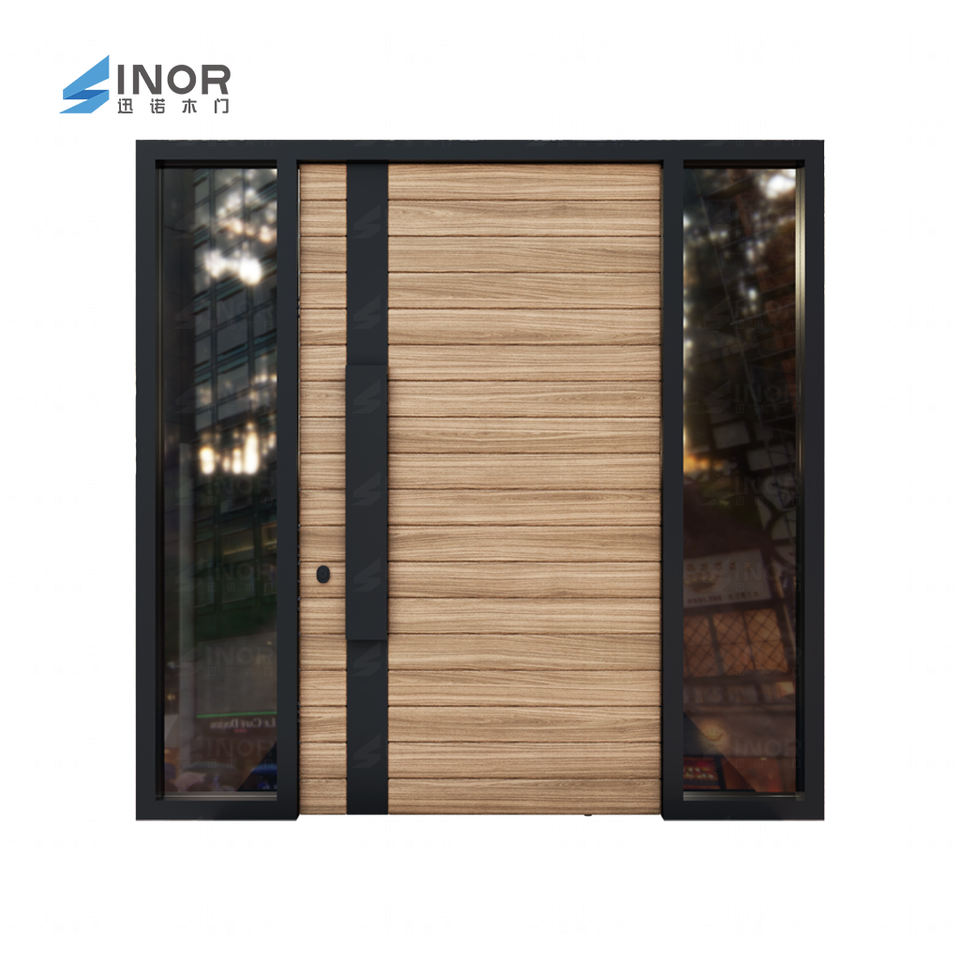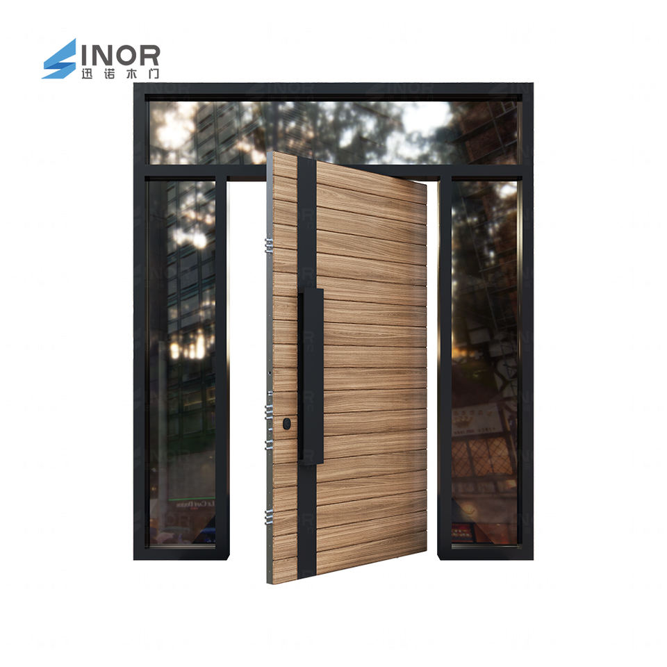 Sistemas de puerta de seguridad de acero inoxidable doble de entrada de metal con pivote exterior de estilo moderno con inserciones de vidrio